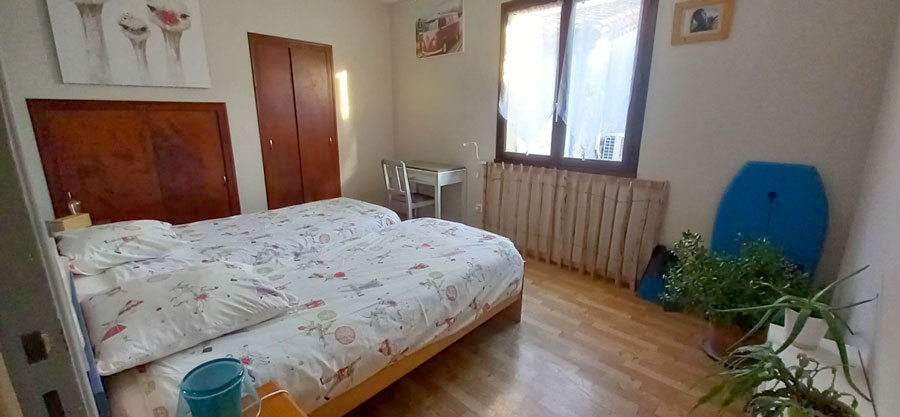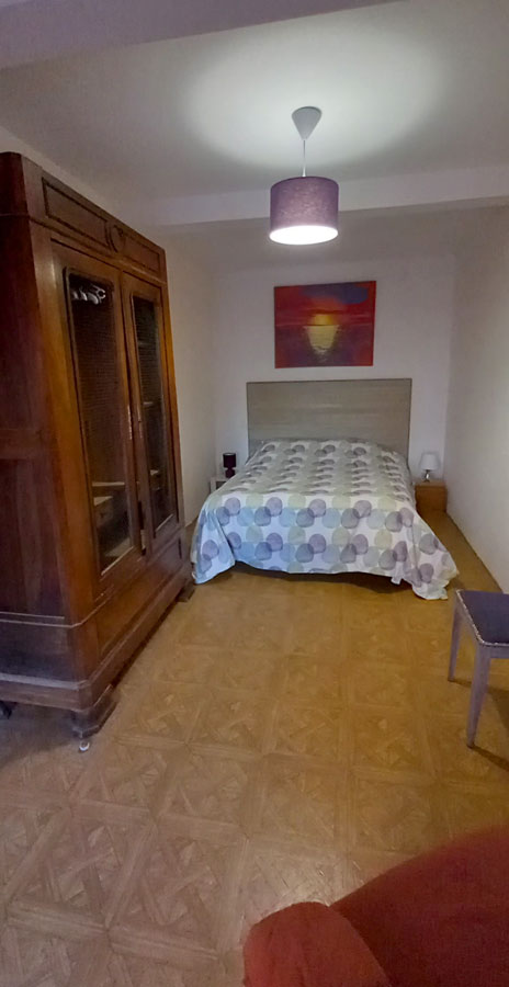 Le logement à l'étage est constitué de trois chambres, un salon, une salle de bains avec les wc séparés et une cuisine. Deux chambres sont équipées d'un lit en 140 et une chambre avec deux lits en 90.